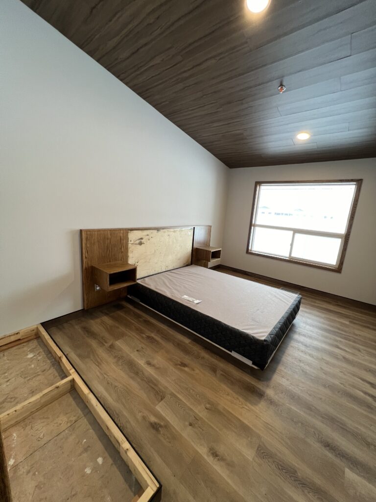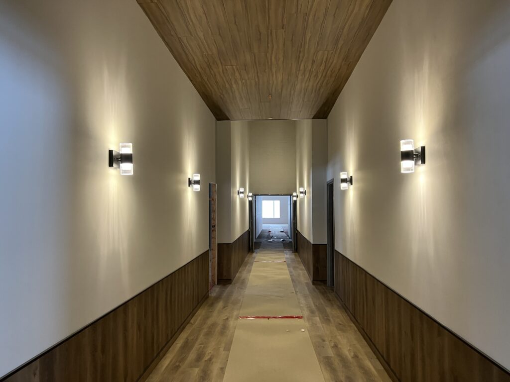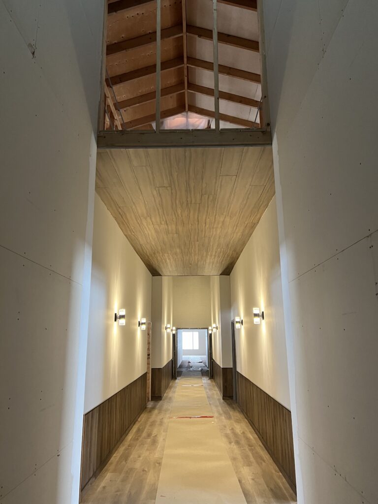 View of Valhalla Viking from entrywayCommon space with area for kitchenCommon space currently planned for dining spacePatio door from show suiteLiving space in 2BR 2B show suiteIn-suite BathroomShow suite BRCompleted guest hallwayShow suite living spaceGuest wing with skylightsIn-progress guest suite